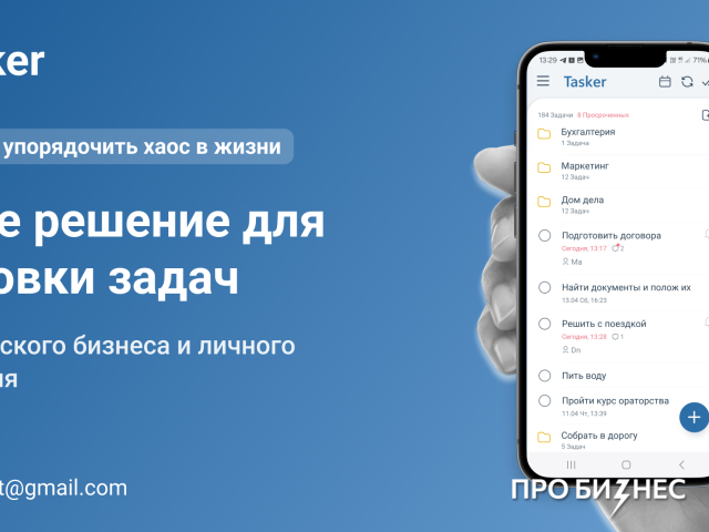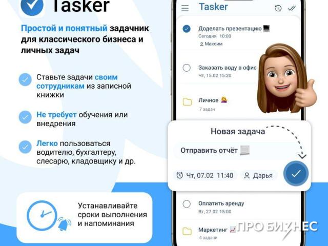 Tasker - мобильное приложение для постановки задач как лично себе, так и другим пользователем. Основным отличием которого, является простота. Оно не требует внедрения и обучения, и им может пользоваться самый неопытный пользователь. Автоматическая синхронизация мобильных контактов, позволяет отправлять (ставить) задачи другим исполнителям в несколько кликов. Также удобно совмещать как личные, так и рабочие дела. Можно ставить сроки выполнения, дополнительные напоминания и по необходимости расформировывать задачи по папкам (критериям).
