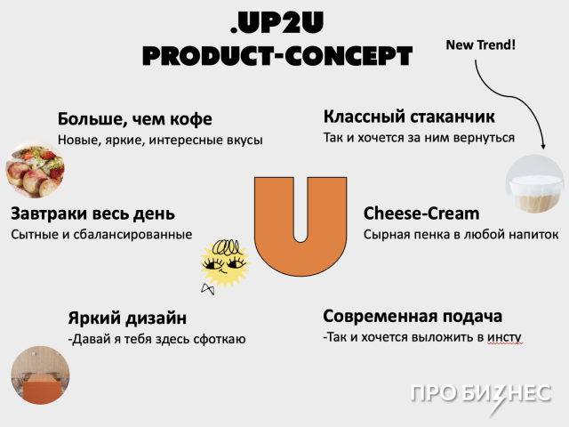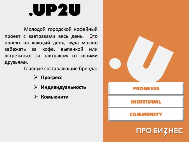 UP2U - это молодой городской кофейный проект с завтраками весь день.  Это проект на каждый день, который создается для прогрессивного молодого поколения, которое ценит этот напиток.