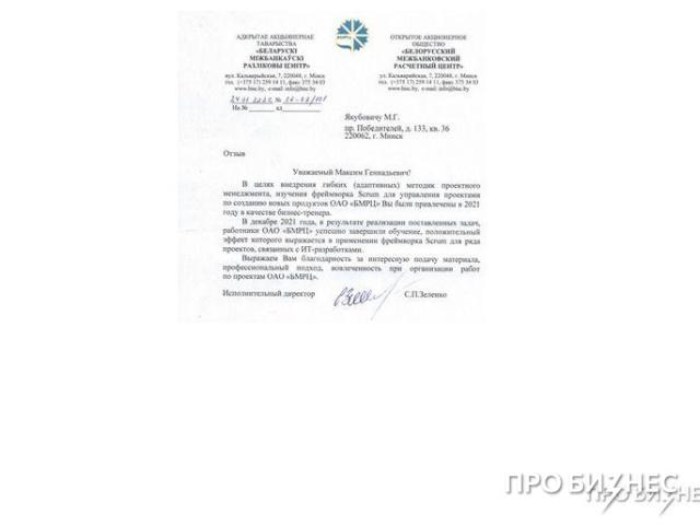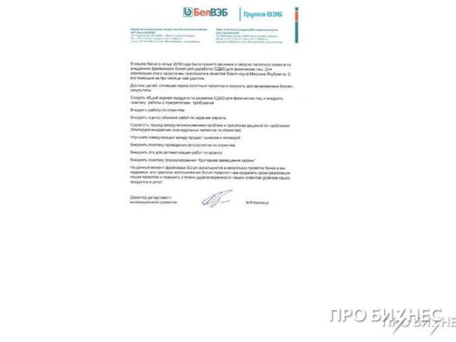 Имею серьезный опыт в налаживании ритмичного итеративно-инкрементального процесса разработки нового продукта с помощью Scrum и Kanban-метода. Помог с внедрением Scrum командам следующих компаний: БелВэб (внедрение Scrum для одной из команд) Приорбанк (внедрение Scrum для одной из команд) SKL (внедрение Scrum для одной из команд) ЛБР-групп (внедрение Scrum в нескольких командах) Новаком (внедрение Scrum для одной из команд) Инкасс-эксперт (внедрение Scrum для одной из команд) Караван (внедрение Scrum для одной из команд) Белорусский межбанковский расчетный центр (внедрение Scrum для трех команд) Синет развитие (внедрение Scrum для шести команд) МТБанк (внедрение Scrum для одной из команд) Помог улучшить удовлетворенность заказчиков с помощью Канбан-метода: - Банк Дабрабыт